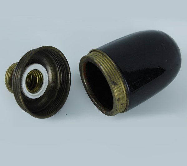 PORTALAMPADA IN VETRO PESANTE PER CAMERA OSCURA, COPERCHIO A VITE IN OTTONE. Vintage.
