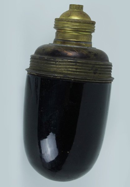 PORTALAMPADA IN VETRO PESANTE PER CAMERA OSCURA, COPERCHIO A VITE IN OTTONE. Vintage. | Libri antichi e moderni |
