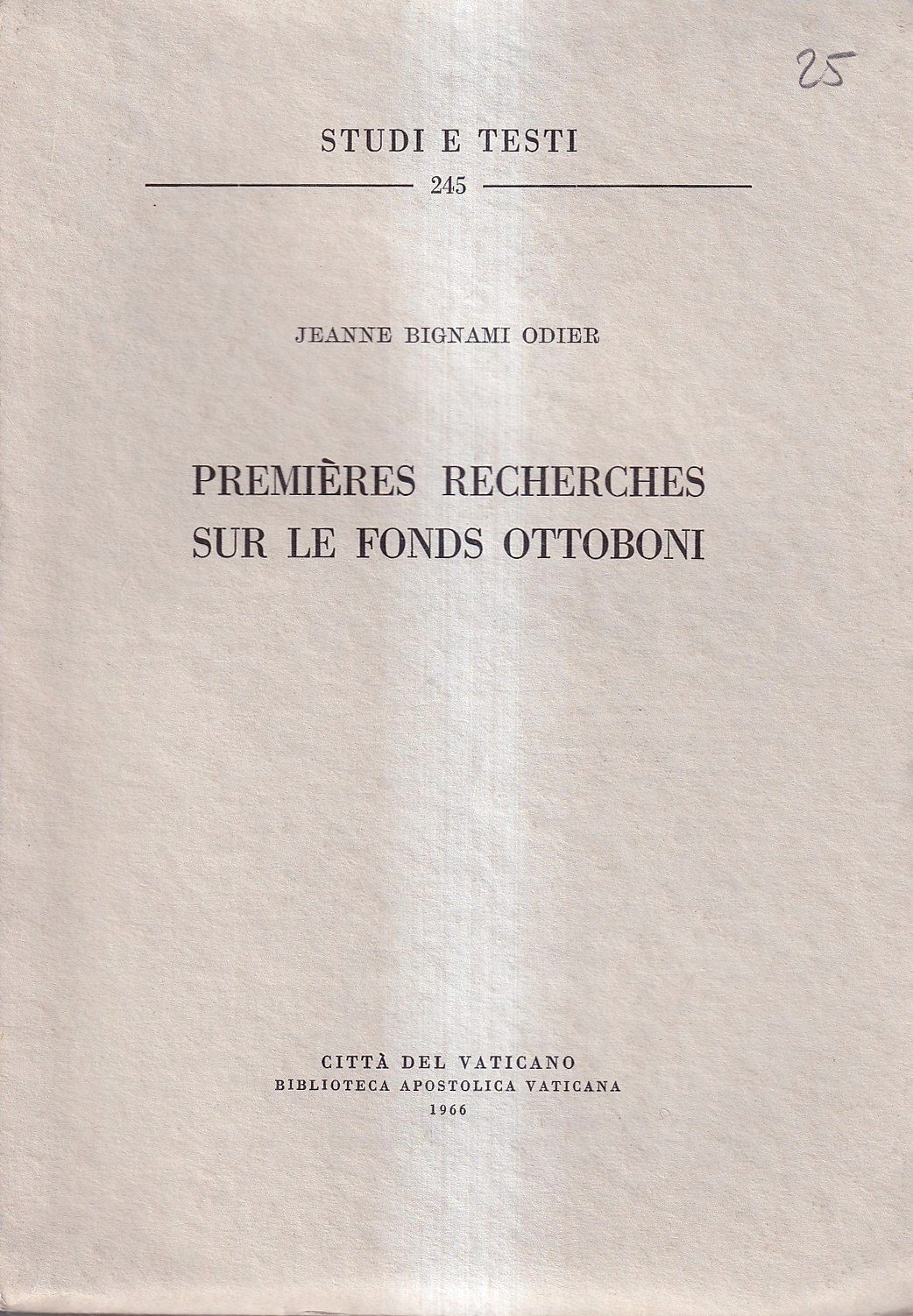 Premières recherches sur le fonds Ottoboni | Libri antichi e moderni | Bignami Odier, Jeanne