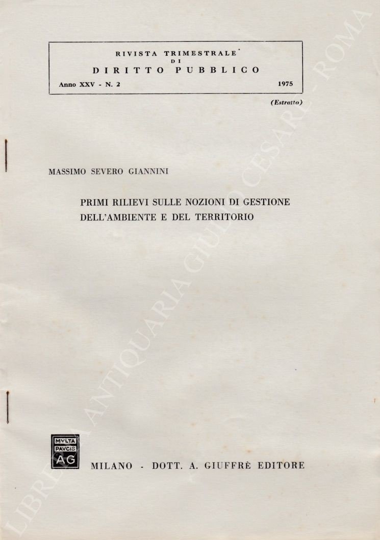 Primi rilievi sulle nozioni di gestione dell'ambiente e del territorio | Libri antichi e moderni | Giannini Massimo Severo (1915-2000)