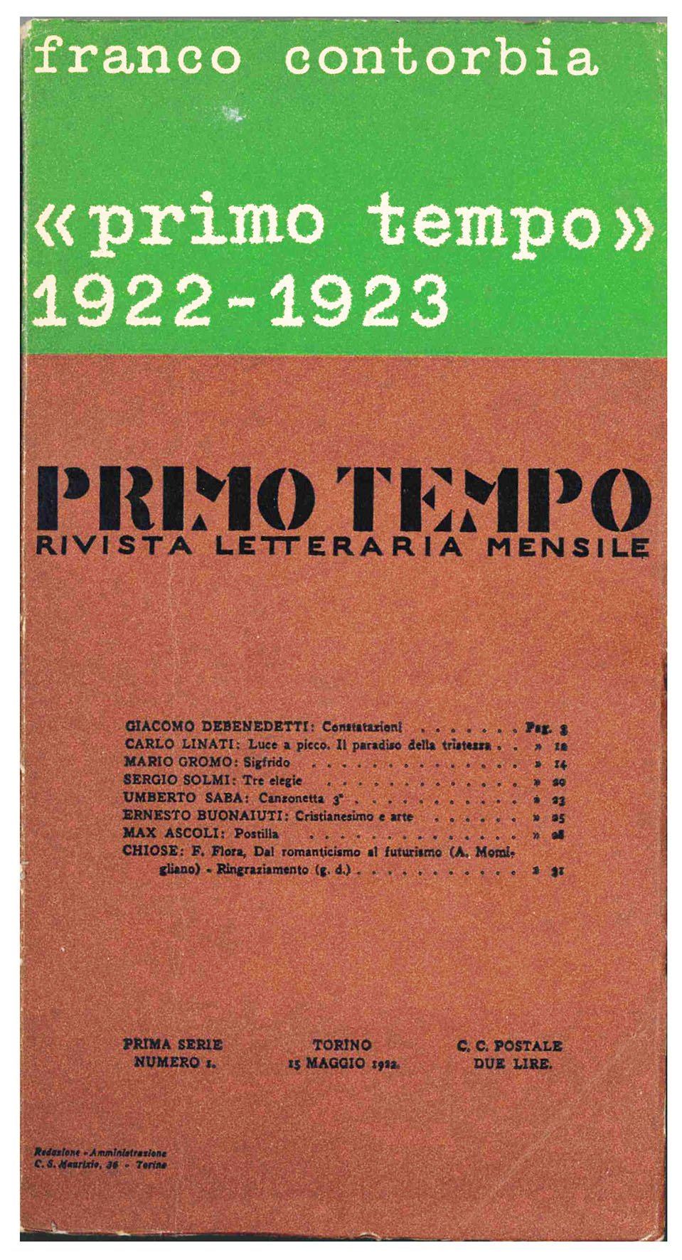 Primo tempo (1922-1923). Rivista letteraria musicale | Libri antichi e moderni | CONTORBIA, Franco