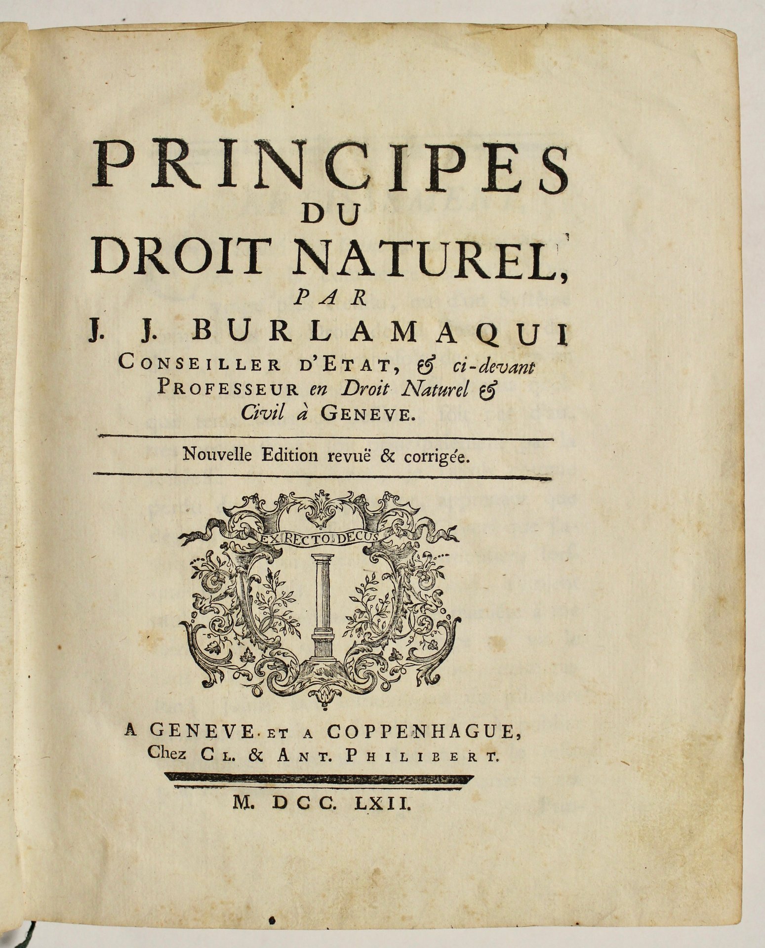 Principes du Droit Naturel par J.J. Burlamaqui.nouvelle edition revue & corrigée. Unito a : Principes du Droit Politique.