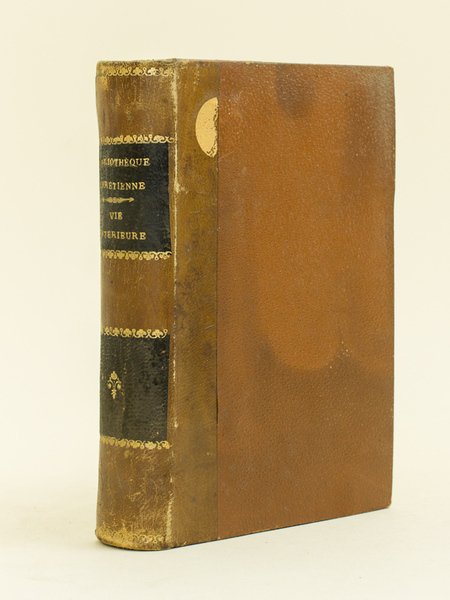 1 vol. in-12 reliure demi-basane marron, coll. Petite Bibliothèque Chrétienne, Alfred Vromant, Bruxelles, s.d. (circa 1880-1890), 66-208-63-228-127 pp. Contient : Principes et Obstacles de la Vie Intérieure (Baudrand) [ Suivi de : ] Exercices, Progrès et Fruits de la Vie Intérieure (Baudrand) [ Suivi de : ] Sept degrés de perfection (Berthier) [ Suivi de : ] Entretiens intimes de l'Ame avec Dieu (Thomas a Kempis) [ Suivi de : ] Méditations pour parvenir à l'Union avec Dieu (Berthier) Etat très satisfaisant (anciens cachets d'institution religieuse, étiquette de cote en garde, rouss., rel. lég. frottée)