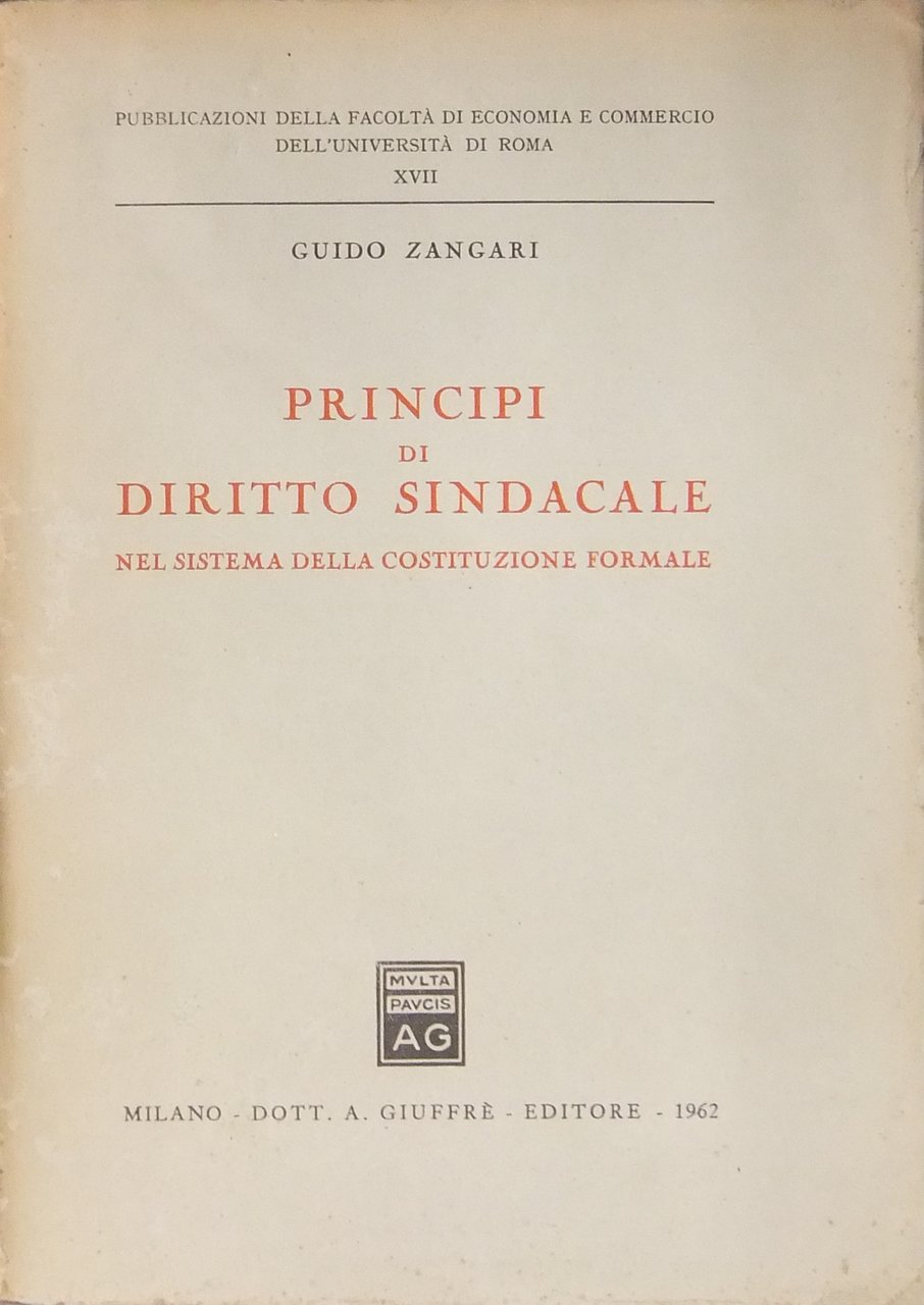 Principi di diritto sindacale nel sistema della Costituzione formale | Libri antichi e moderni | Zangari Guido
