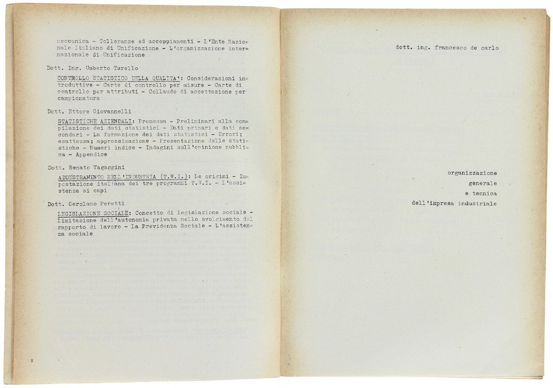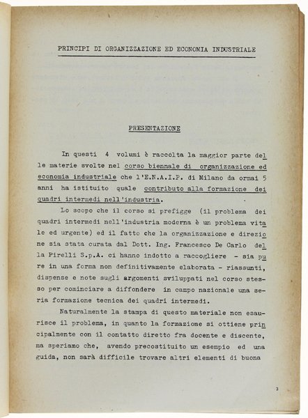 PRINCIPI DI ORGANIZZAZIONE ED ECONOMIA INDUSTRIALE per la formazione dei quadri intermedi. | Libri antichi e moderni |