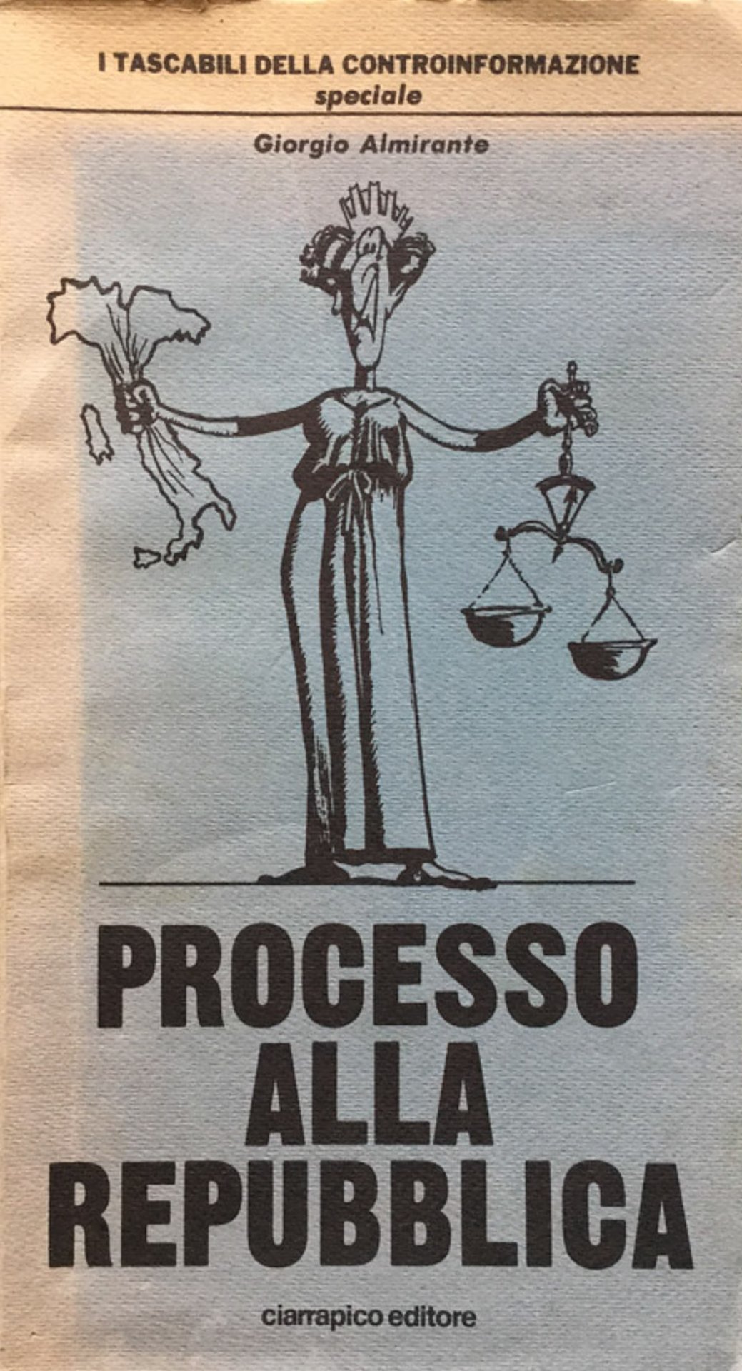 Giorgio Almirante, Processo alla Repubblica. Roma, Ciarrapico Editore, 1980. Brossura- 175 pp., 25 cm. Collana I tascabili della controinformazione speciale. Condizioni buone. 8 Buono (Good) Buono