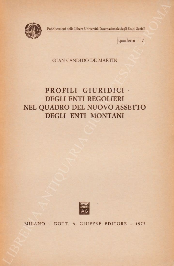 Profili giuridici degli enti regolieri nel quadro del nuovo assetto degli enti montani | Libri antichi e moderni | De Martin Gian Candido