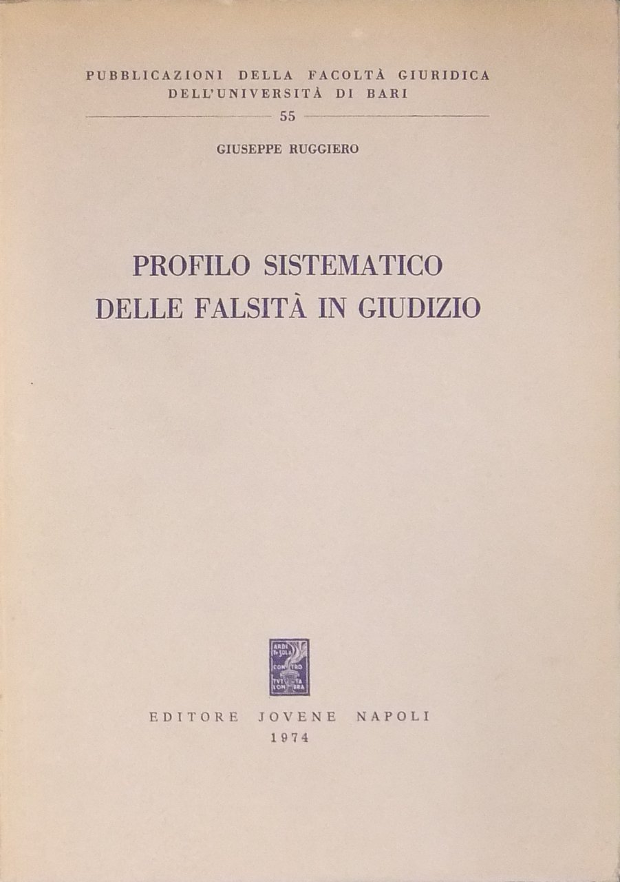Profilo sistematico delle falsità in giudizio | Libri antichi e moderni | Ruggiero Giuseppe