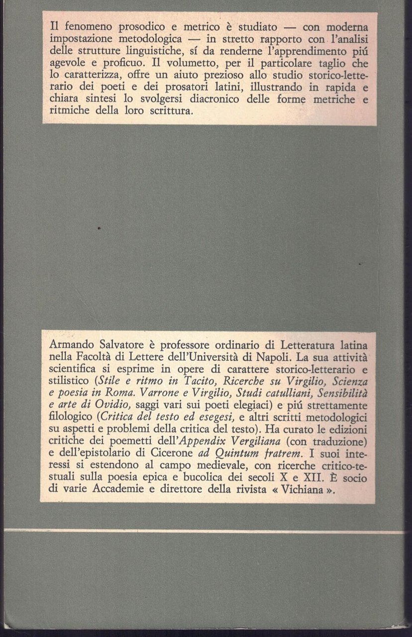 Prosodia e metrica latina - Storia dei metri e della prosa metrica | Libri antichi e moderni | A. Salvatore, ,A. Salvatore