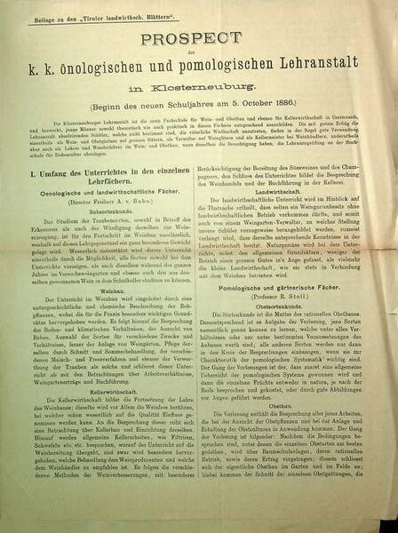 Prospect der k.k. önologischen und pomologischen Lehranstalt in Klosterneuburg.