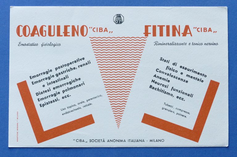 Pubblicità d'epoca Farmaceutica Carta Assorbente - Coaguleno - Fitina - Ciba | Libri antichi e moderni |