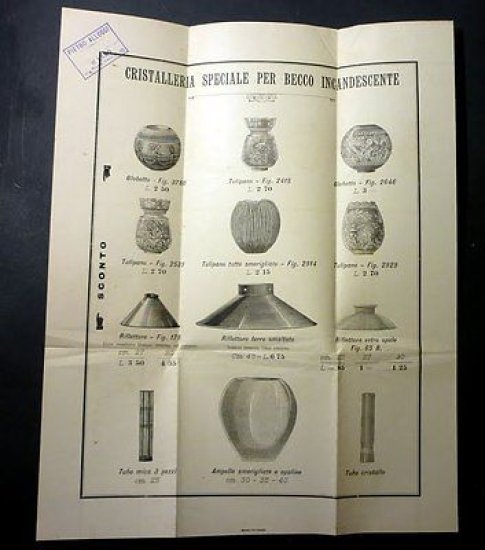*** Pubblicità Volantino - Pietro Alloggi - Cristalleria Speciale per Becco Incandescente - 1900 ca. Dimensioni: 30 x 37,5 cm ca. Per appassionati, studiosi e collezionisti