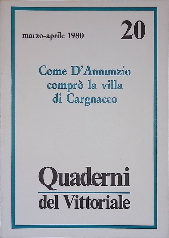 Quaderni del Vittoriale n.20 marzo-aprile 1980. Come d'Anninzio comprò la villa di Cargnacco | Libri antichi e moderni |