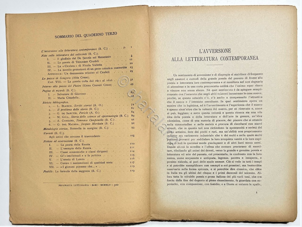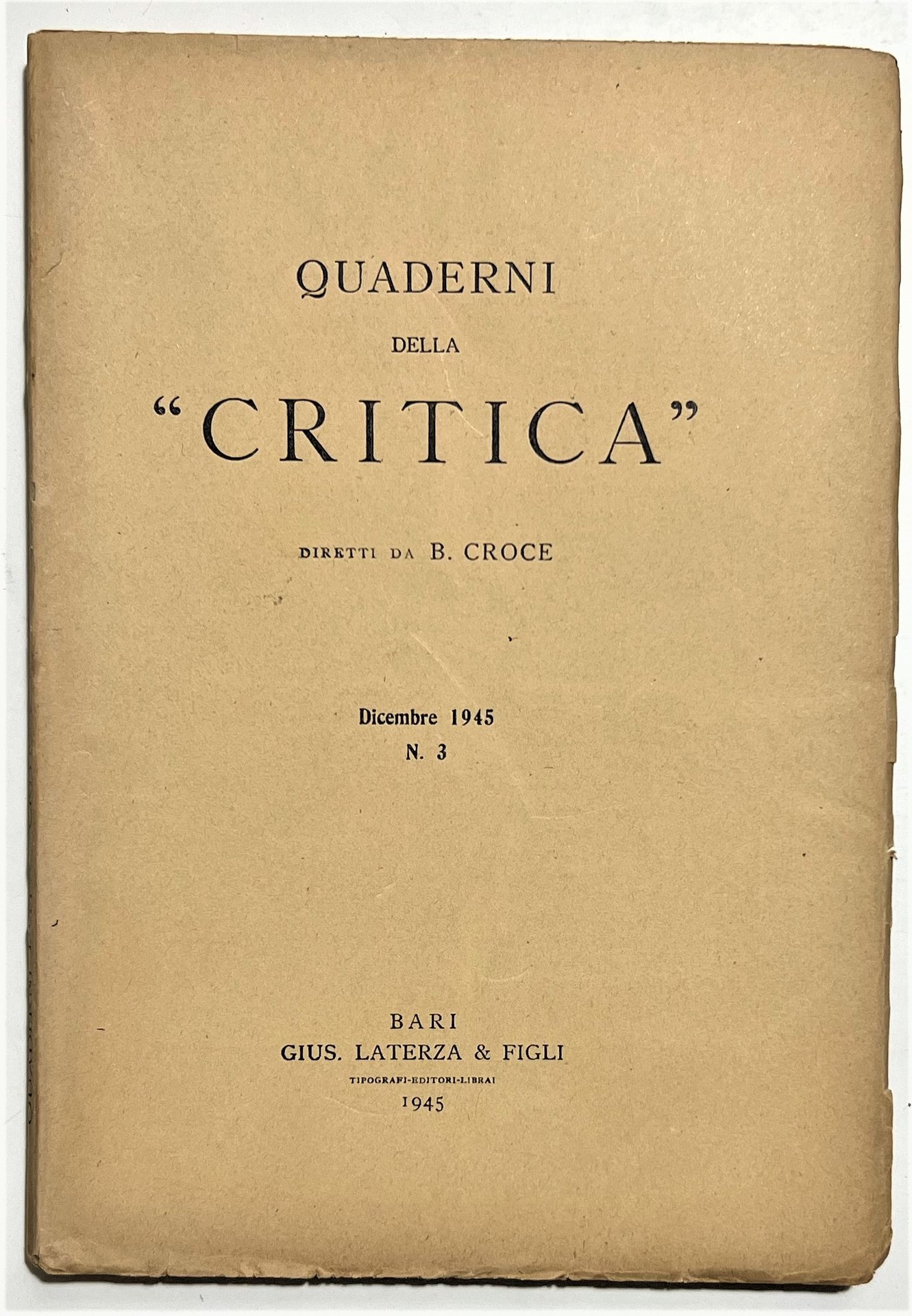 Quaderni della Critica diretti da B. Croce - Dicembre 1945 N. 3 | Libri antichi e moderni |