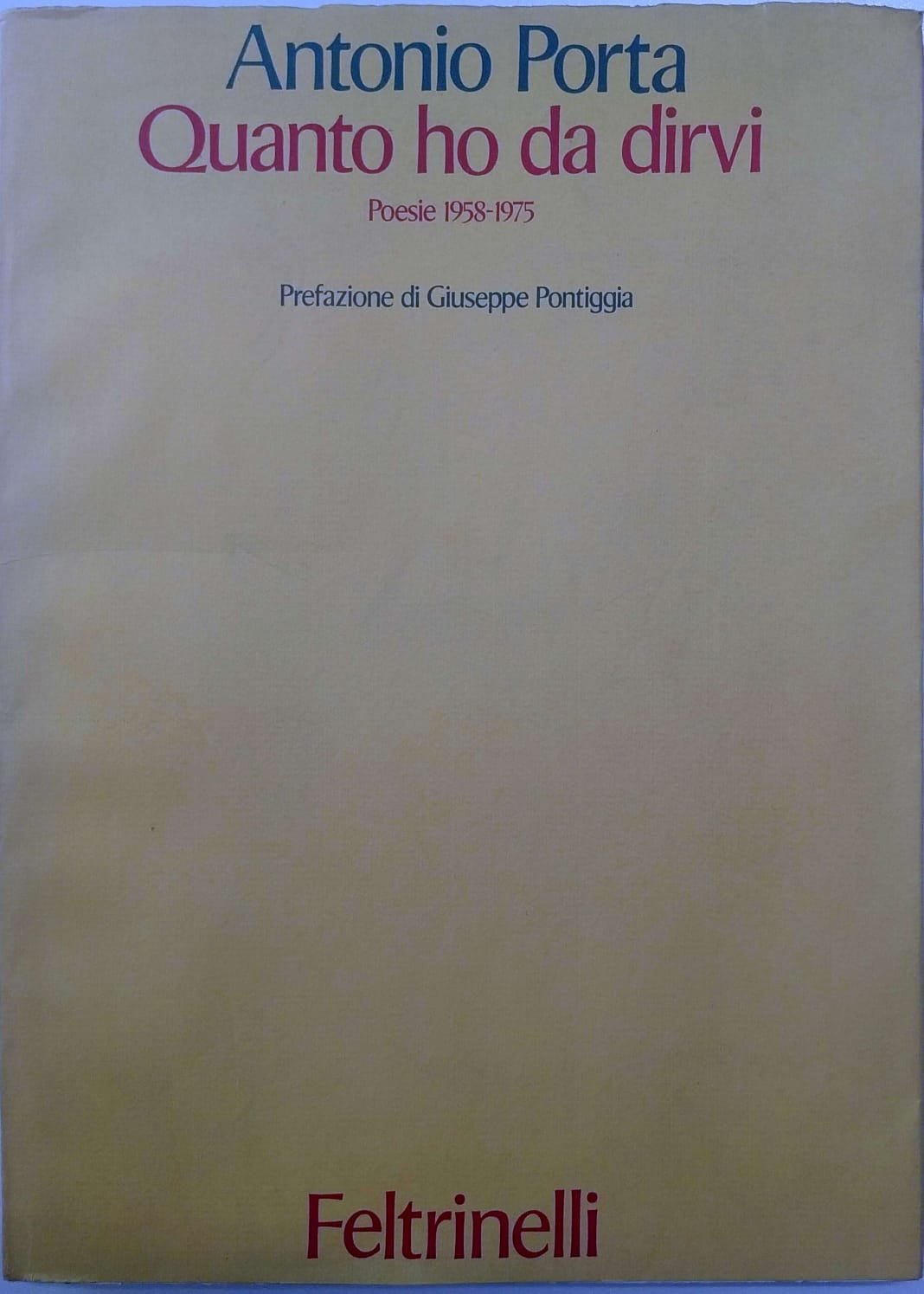 QUANTO HO DA DIRVI. - Poesie 1958-1975. Introduzione di Giuseppe Pontiggia. | Libri antichi e moderni | PORTA Antonio