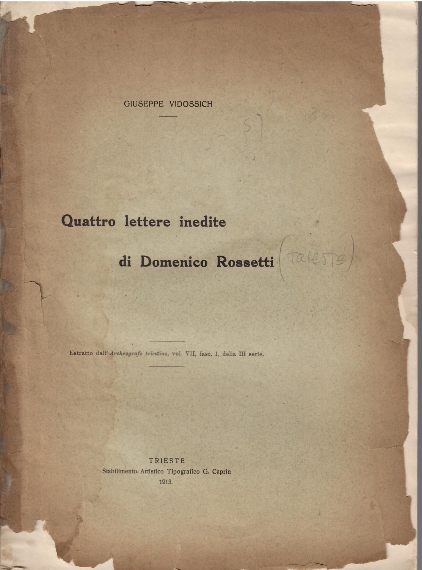 QUATTRO LETTERE INEDITE DI DOMENICO ROSSETTI | Libri antichi e moderni | Giuseppe Vidossich