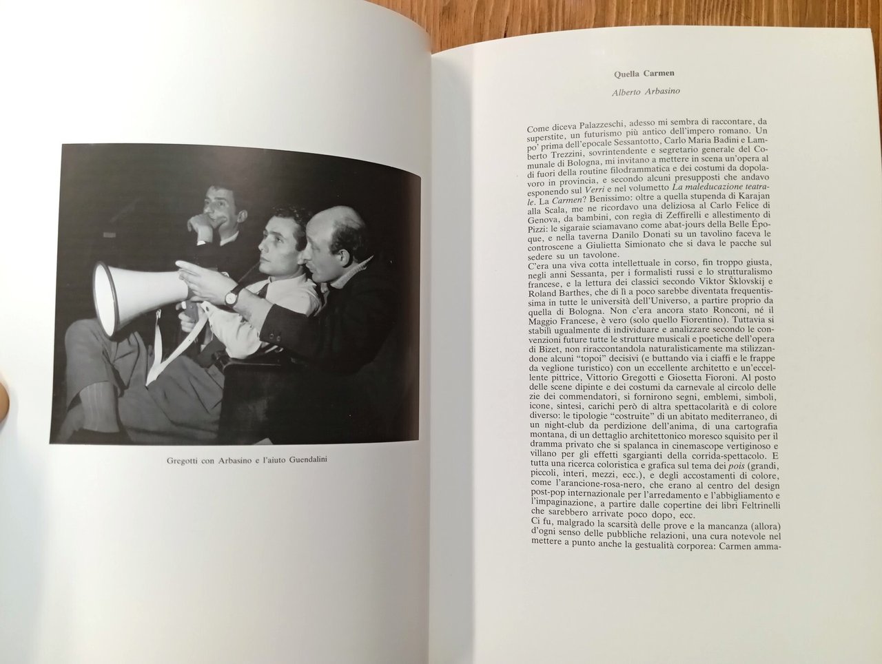 Quaderno di ricordi e documentazione iconografica relativi alla produzione della "Carmen" di Puccini realizzata nell'ambito della stagione 1966-1967 del Teatro Comunale di Bologna. Regia di Alberto Arbasino, scenografie di Vittorio Gregotti, costumi su bozzetti di Giosetta Fioroni. Pubblicazione realizzata in occasione della relativa mostra presentata alla Galleria dell'Oca di Roma, circa nel 1989 - Brossura editoriale di 32 pagine non numerate con illustrazioni in bianco e nero. Esemplare in ottime condizioni di un catalogo non comune.
