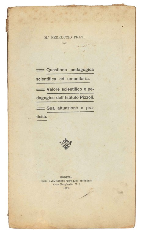 Questione pedagogica scientifica ed umanitaria. | Libri antichi e moderni | PRATI, Ferruccio