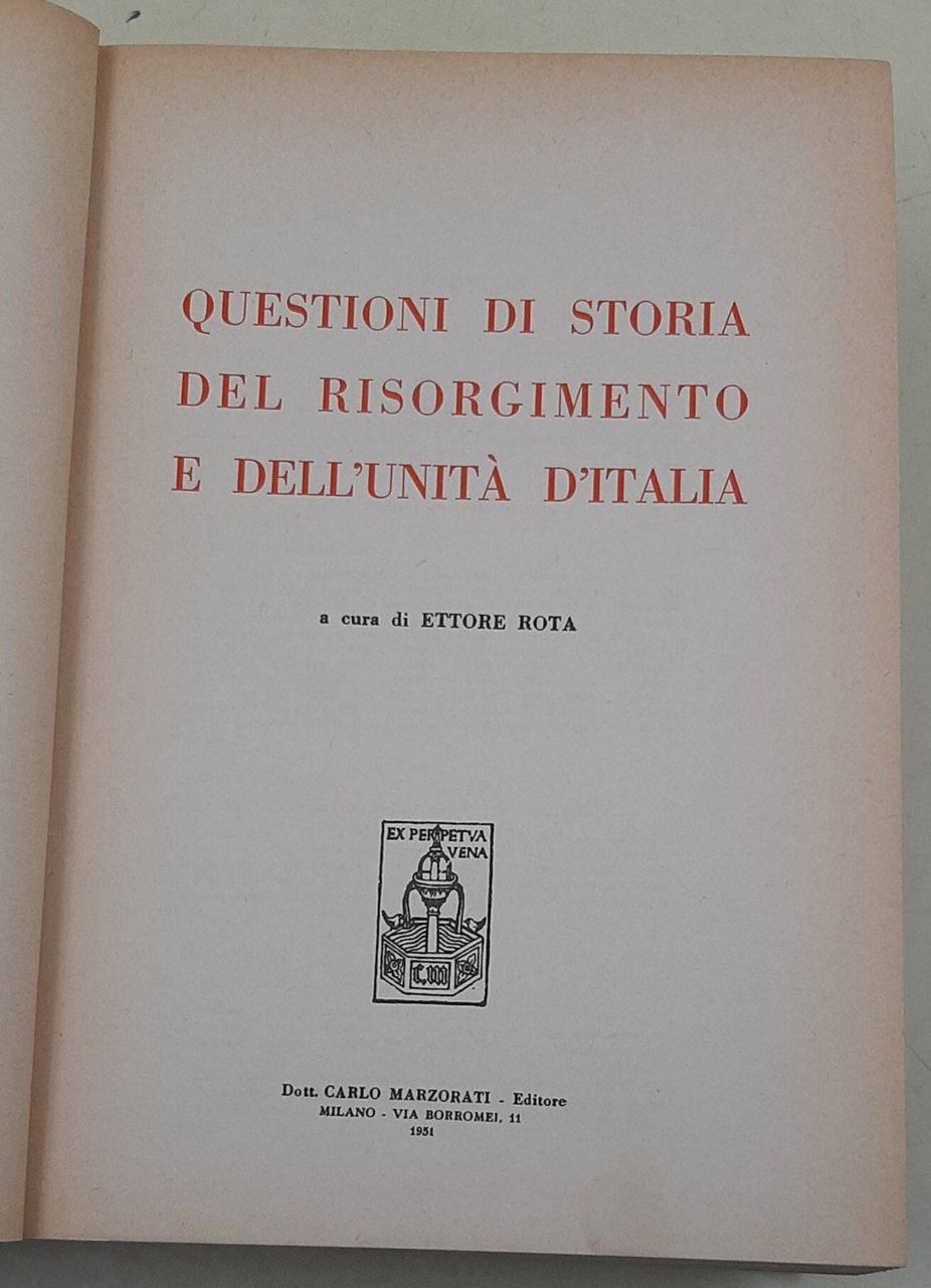 Questioni di Storia del Risorgimento e dell'Unita' d'Italia | Libri antichi e moderni | Rota, Ettore ( a cura di )
