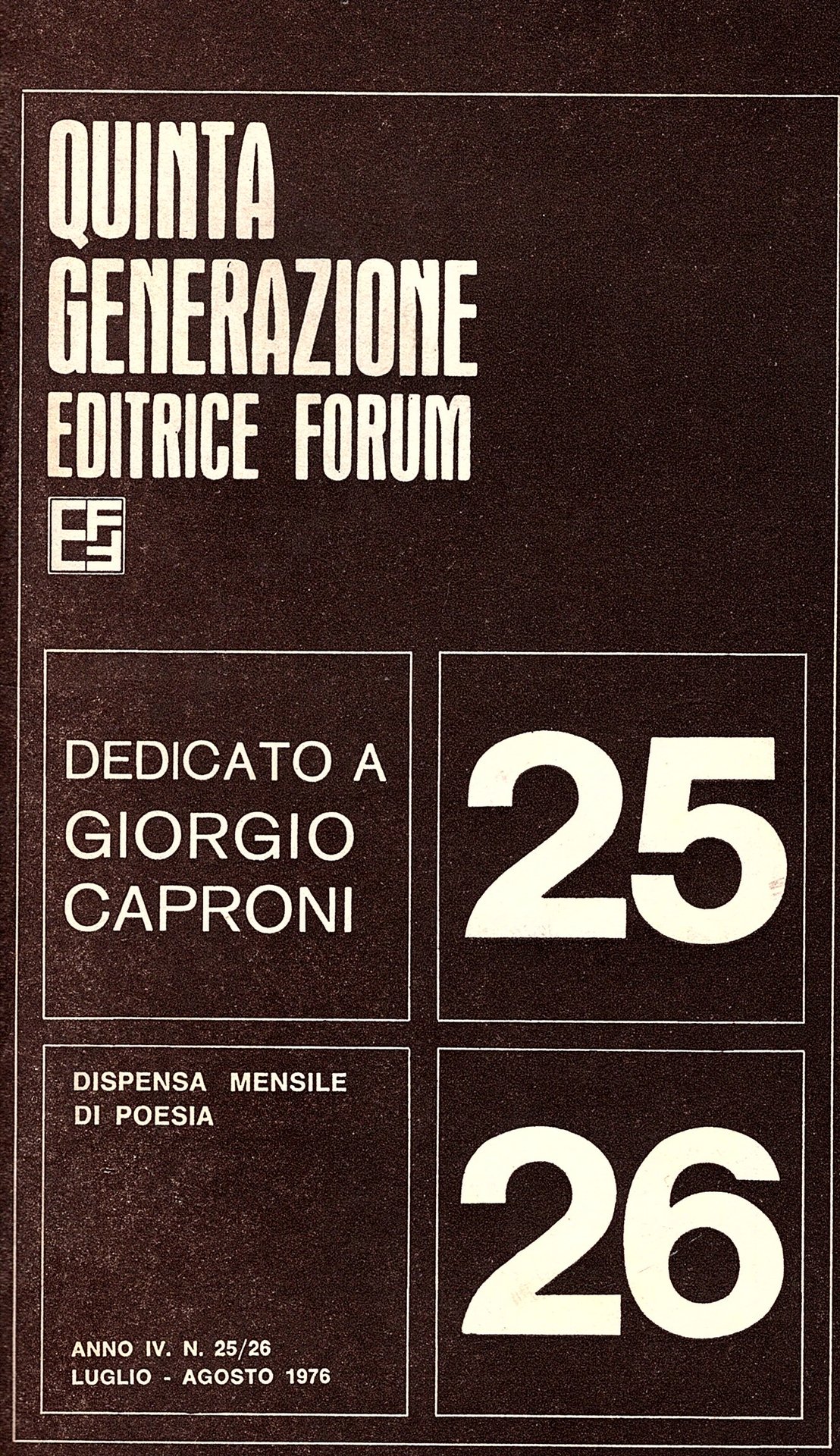 Quinta generazione. DEDICATO A GIORGIO CAPRONI Rivista Bimestrale di poesia. Anno IV N. 25.26 Luglio-agosto 1976