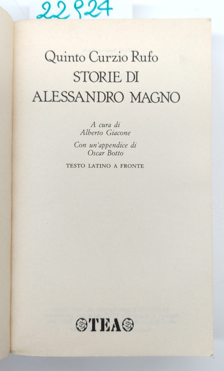 Quinto Curzio Lupo Storie di Alessandro Magno Tea 2° edizione 1989