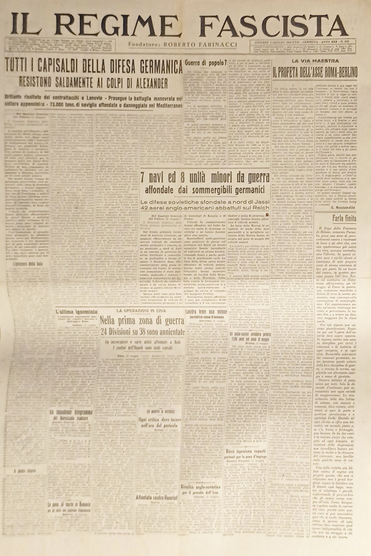 Quotidiano - Il Regime Fascista n. 130 - 1944 Capisaldi della difesa germanica | Libri antichi e moderni |
