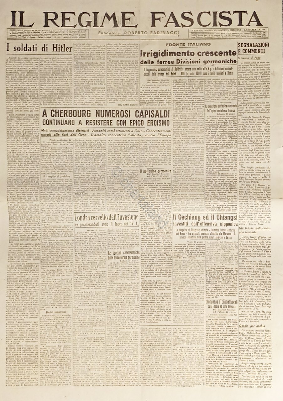 Quotidiano - Il Regime Fascista n. 155 - 1944 A Cherbourg numerosi capisaldi | Libri antichi e moderni |