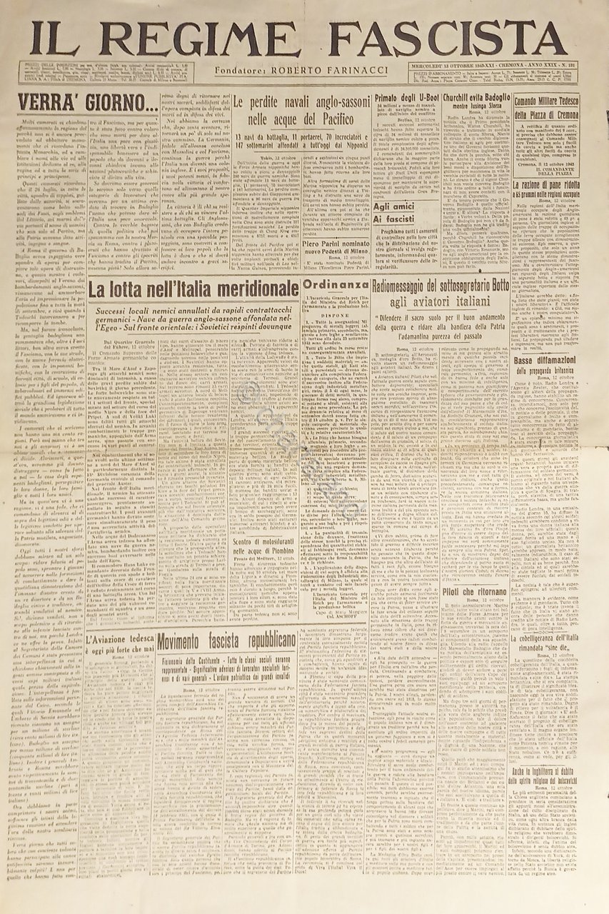 Quotidiano - Il Regime Fascista n. 191 - 1943 La lotta nell'Italia meridionale
