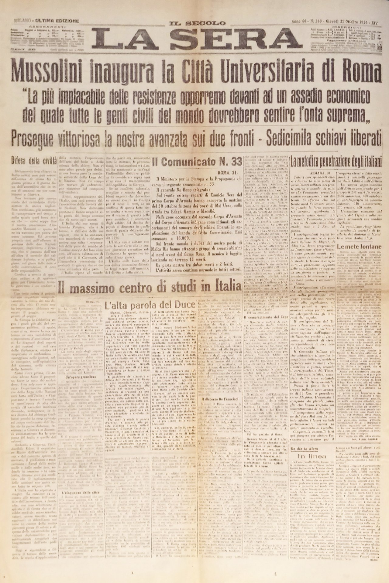 Quotidiano - La Sera N. 260 - 1935 Mussolini inaugura la Città Universitaria | Libri antichi e moderni |