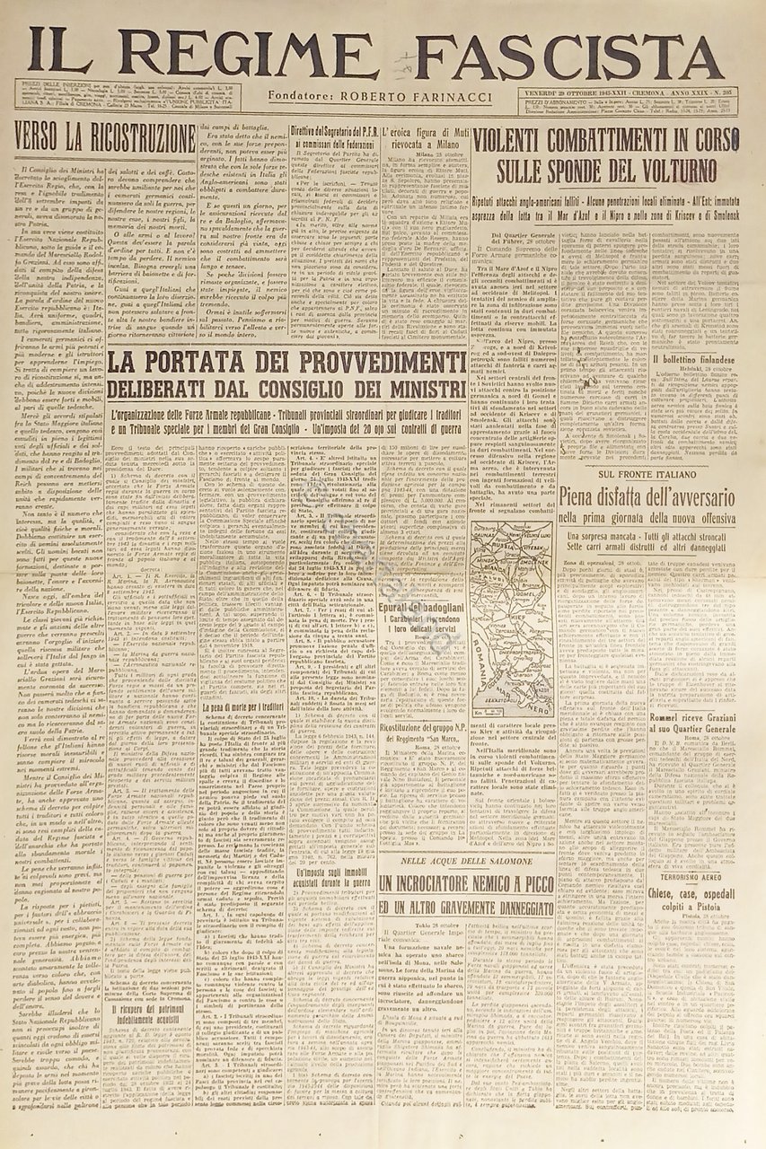 Quotidiano Il Regime Fascista n. 205 - 1943 Combattimenti sulle sponde Volturno