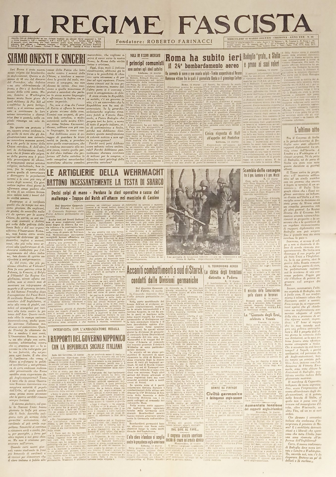 Quotidiano Il Regime Fascista n. 64 - 1944 Le Artiglierie della Wehrmacht