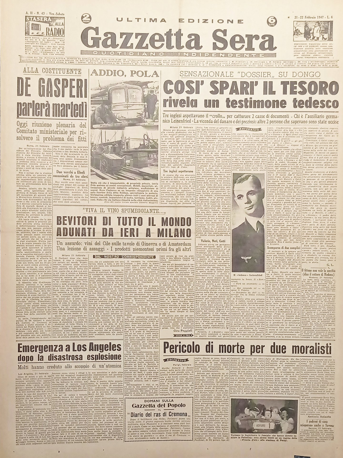 Quotidiano Indipendente - Gazzetta Sera N. 43 - Parlerà De Gasperi - 1947 Teston in lingua italiana. Pagine 2 con illustrazioni. Condizioni buone con piccoli segni del tempo come da foto.
