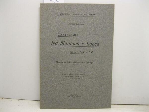 R. Accademia Virgiliana di Mantova. Carteggio fra Mantova e Lucca nei secoli XIV e XV. Regesto di lettere dell'Archivio Gonzaga. Estratto dagli Atti e Memorie, nuova serie | Libri antichi e moderni | Carmassi Giuseppe