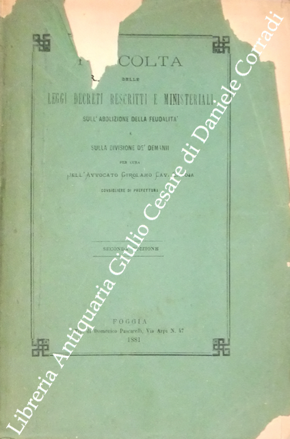 Raccolta delle leggi decreti e ministeriali sull'abolizione della feudalità e sulla divisione de' demani | Libri antichi e moderni | Savoja Girolamo