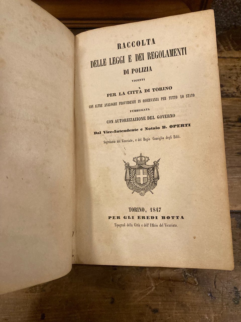 Raccolta delle leggi e dei regolamenti di Polizia vigenti per la città di Torino con altre analoghe provvidenze in osservanza per tutto lo Stato pubblicata con autorizzazione del Governo dal Vice - Intendente e Notaio B. Operti | Libri antichi e moderni | Operti Benedetto (A Cura)