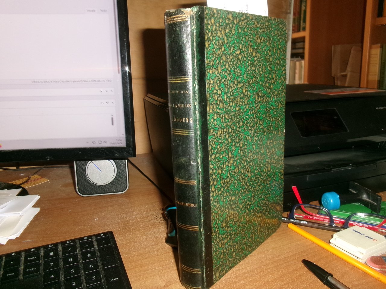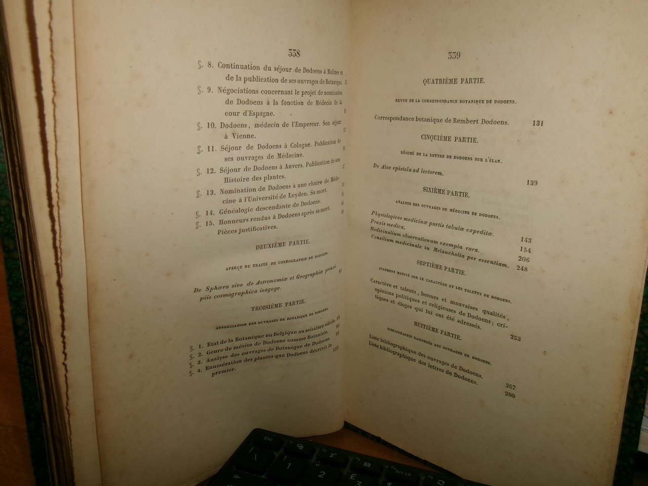 RECHERCHES historiques et critiques sur la vie et les ouvrages de Rembert Dodoens (Dodonaeus). Malines, P.J. Hanicq, 1841. In-8°, m. pelle coeva. xvi, 340 pp., ritratto e una tavola f.t. Il cap. VIII contiene la Bibliographie raisonnée des ouvrages de Dodoens (pp. 265-279) e la Liste bibliographique des lettres de Dodoens (pp. 280-282); il cap. IX contiene la Liste des ouvrages qui donnent des détaile sur la vie ou les oeuvres de Dodoens (pp. 283-292). Ottimo esemplare. Neg. esot. mob. 10