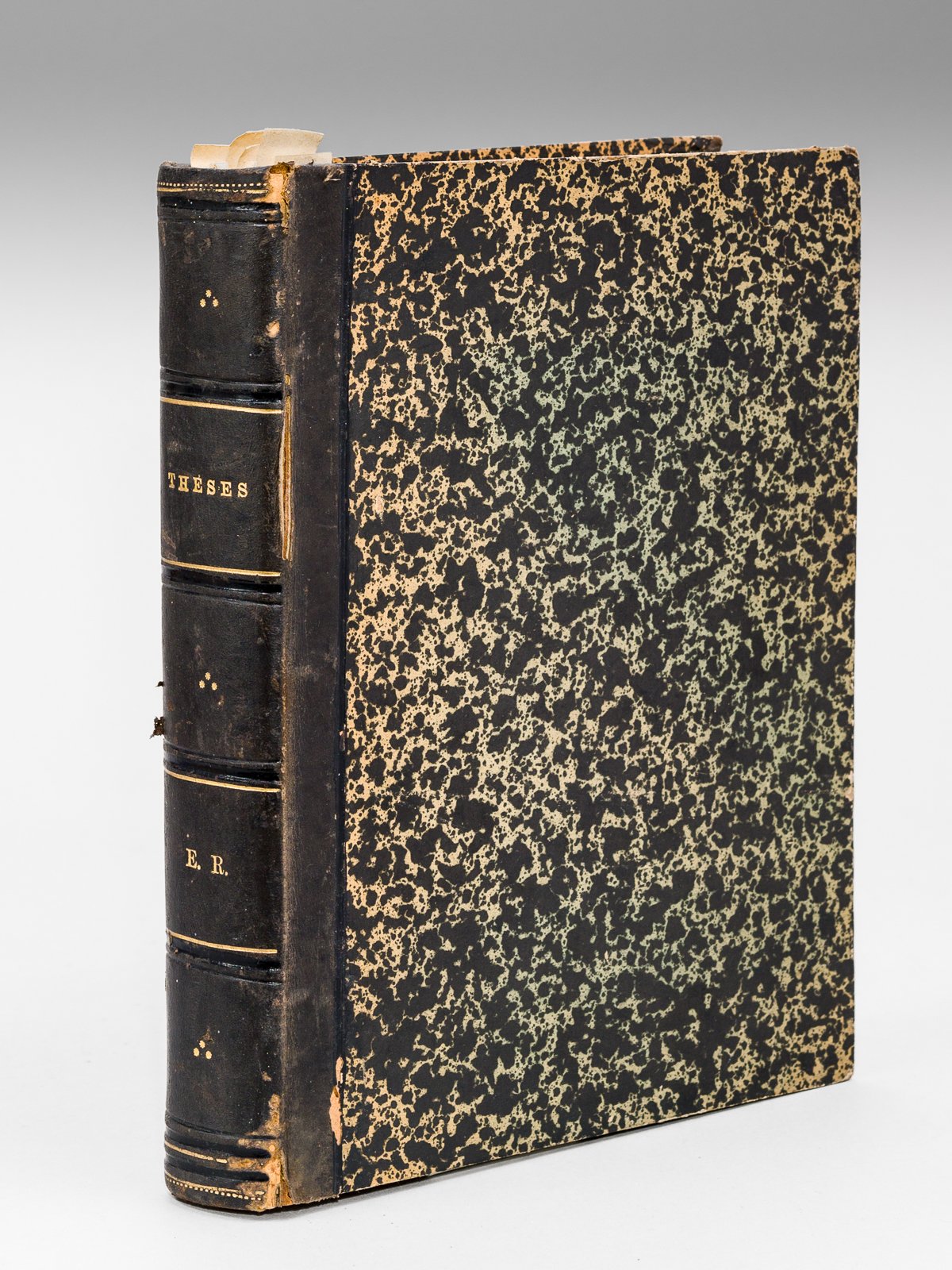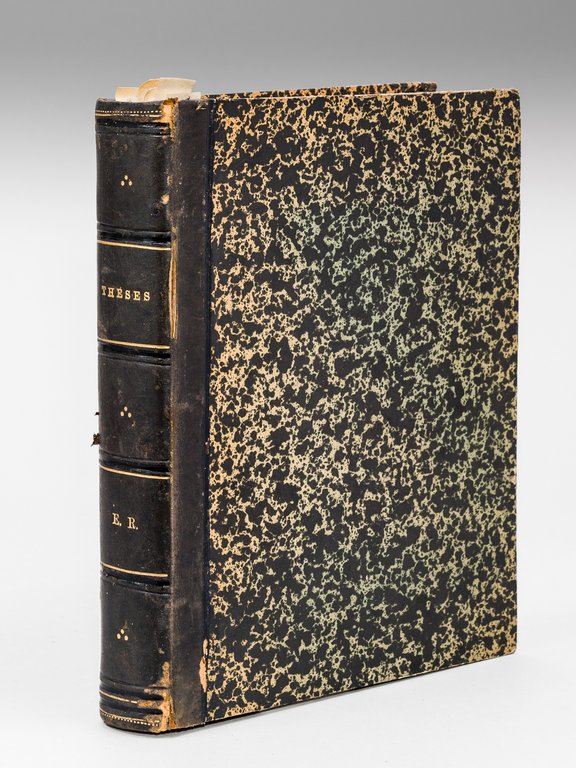 1 vol. grand in-8 reliure demi-basane marron : [ Recueil de thèses de médecine : ] Considérations sur l'Hygiène des Troupes à la Guadeloupe. Thèse pour le Doctorat en médecine soutenue le 23 mai 1887 par Pierre-Firmin-Gustave Merveilleux [ Suivi de : ] De l'Emploi thérapeutique de l'Eau extus et intus. Thèse présentée à Montpellier le 21 décembre 1872 par Gustave Pilon [ Suivi de : ] De l'Atmosphère marine. Thèse présentée à Montpellier le 1er mars 1872 par H. Latty [ Suivi de : ] Notes sur quelques maladies observées à la Guadeloupe. Thèse présentée à Paris le 6 août 1873 par Charles-Théodore Batby-Berquin, né à La Guadeloupe [ Suivi de : ] De la réduction du Pédoncule dans l'Ovariotomie, par Louis Duplouy [ Suivi de : ] Contribution à l'étude du rétrécissement spasmodique de l'oesophage et du vaginisme, par Alphonse Seney [ Suivi de : ] [ Sur le Choléra asiatique à la Guadeloupe ], s.l.n.d., 84 pp. et 1 f. [ Suivi de : ] Etude sur la Maladie appelée Oreillons, sa Nature, ses Expressions, ses Rapports, etc.,par J. Gailhard Recueil de 8 thèses de médecine dont 3 rares et intéressants travaux relatifs à la Guadeloupe. Pierre Firmin Gustave Merveilleux (1858-1924) finira sa carrière comme médecin inspecteur des troupes coloniales et Commandeur de la Légion d'Honneur. Bon ensemble (fentes partielles en mors, bon état par ailleurs).