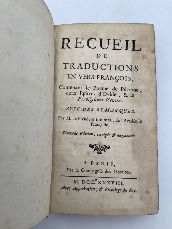 Recueil de traductions en vers françois, contenant le Poëme de Pétrone, deux Epitres d'Ovide et le Pervigilium Veneris. Avec des remarques | Libri antichi e moderni | Bouhier, Président