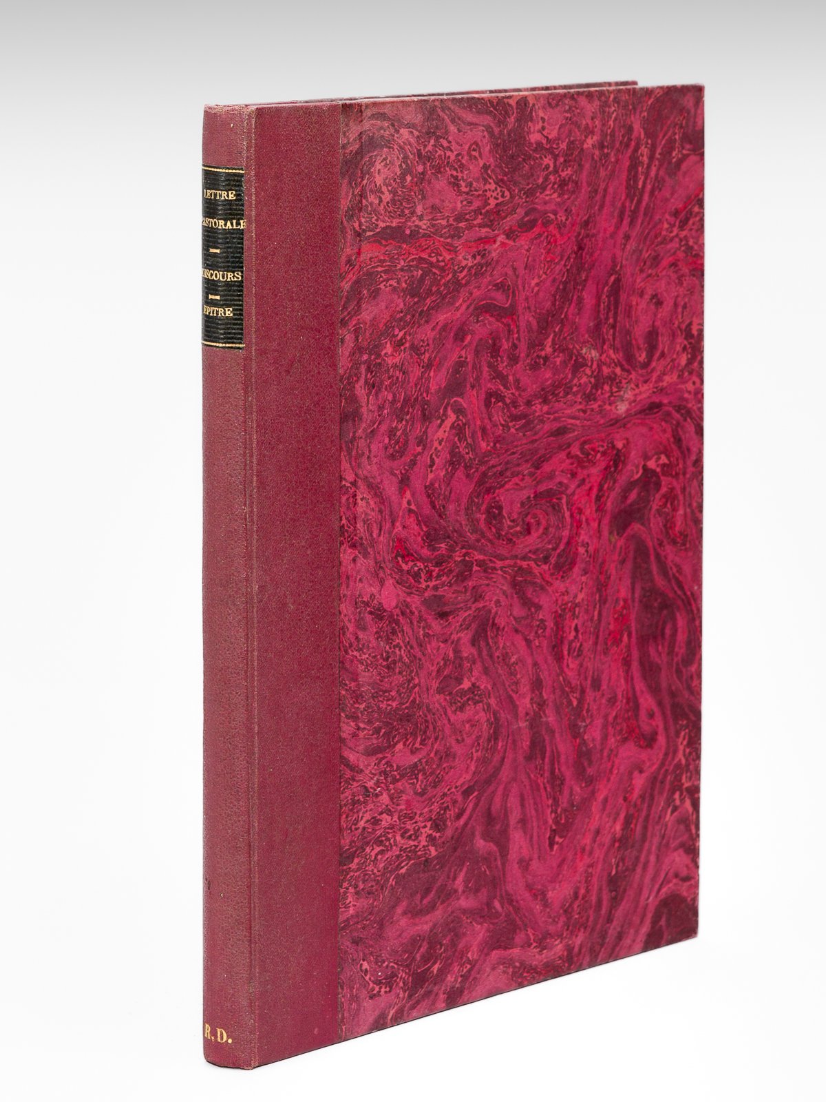 1 vol. petit in-4 reliure début XXe demi-percaline bordeaux, Lettre Pastorale de Monseigneur l'Evêque de Meaux aux Nouveaux Catholiques de son Diocèse, pour les exhorter à faire leurs Pasques, & leur donner les avertissemens necessaires contre les fausses Lettres Pastorales des Ministres, Seconde Edition, Par Sebastien Mabre-Cramoisy, Paris, 1686, 53 pp. et 1 f. [Suivi de : ] Discours qui a remporté le Prix d'Eloquence par le Jugement de l'Académie Françoise en l'année MDCLXXIII Sur le Sujet donné par Feu Monsieur de Balzac. De la Science du Salut, opposée aux vaines & mauvaises connoissances, & aux curiositez blasmables & defendues, Chez Pierre le Petit, à Paris, 1673, 30 pp. (premier feuillet blanc) [ Suivi de : ] Epitre dédicatoire de la dernière édition des Conciles au Roy. Traduite de latin en François, Chez Sebastien Mabre-Cramoisy, à Paris, 1672, 9 ff. avec 2 bandeaux [version française suivie de la version latine : "Novae Conciliorum editions Dedicatio" ] Belle réunion de la seconde réunion d'une lettre pastorale de Bossuet, et deux très rares éditions originales, la première par l'Abbé de Melun de Maupertuis, la seconde par l'historien jésuite Gabriel Cossart (1615-1674). Les 2 bandeaux du dernier ouvrage sont superbes. Bon exemplaire
