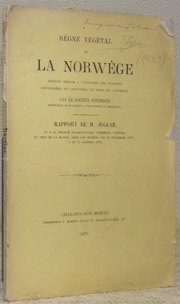 Règne végétal de la Norvège devant servir à l’histoire des plantes spontanées et cultivées du Nord de l’Europe. Rapport de M. Juglar lu à la Société d’Agriculture, Commerce, Sciences et Arts de la Marne. | Libri antichi e moderni | Juglar, M. – Schubeler, Docteur.