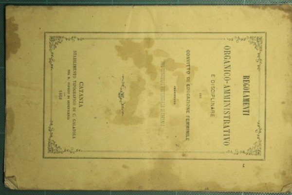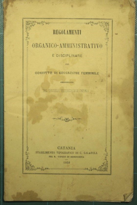 Regolamenti organico-amministrativo e disciplinare pel convitto di educazione femminile instituito dal Consiglio Provinciale di Catania | Libri antichi e moderni | Anonimo