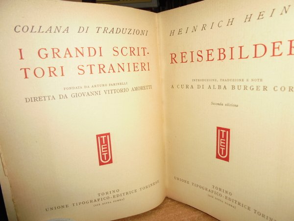 Heinrich, Heine. Torino, Unione Tipografico-Editrice Torinese, 1960. REISEBILDER. In-16°, cartoncino edit. ritratto in bianco e nero, 546 pp. Lievi segni del tempo nelle copertine. Interno in ottimo stato. Neg. Bol. mob. S. carc.