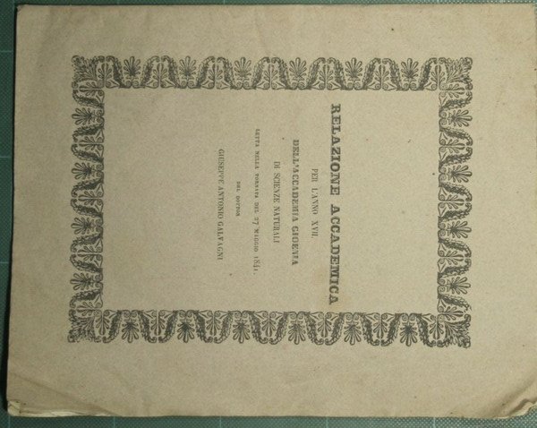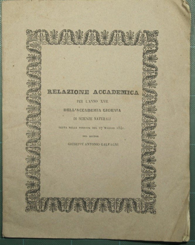 Relazione accademica per l'anno XVII dell'Accademia Gioenia di scienze naturali letta nella tornata del 27 maggio 1841 | Libri antichi e moderni | Galvagni Giuseppe Antonio