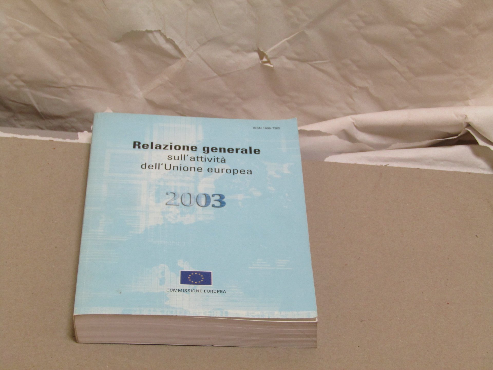 AAVV RELAZIONE GENERALE SULL'ATTIVITA' DELL'UNIONE EUROPEA 3003 . BRUXELLES, COMMISSIONE EUROPEA 2004 , In-8 - bross. edit. - pp. XV + 636 - ottimo / La Relazione generale sull'attività dell'Unione europea viene pubblicata annualmente dalla commissione europea a norma degli art. 212 del trattato CE e 125 del trattato CEEA. La relazione che viene presentata al Parlamento europeo fornisce un quadro globale delle attività comunitarie svolte durante l'anno precedente.
