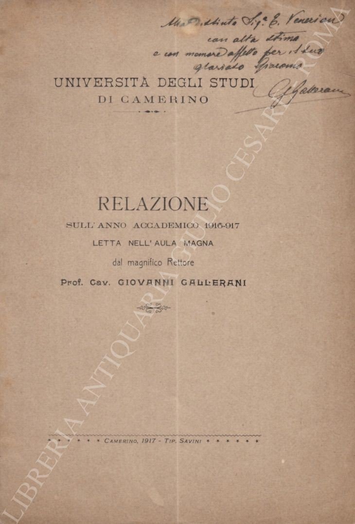 Relazione sull'anno accademico 1916-917 letta nell'Aula Magna | Libri antichi e moderni | Callerani Giovanni