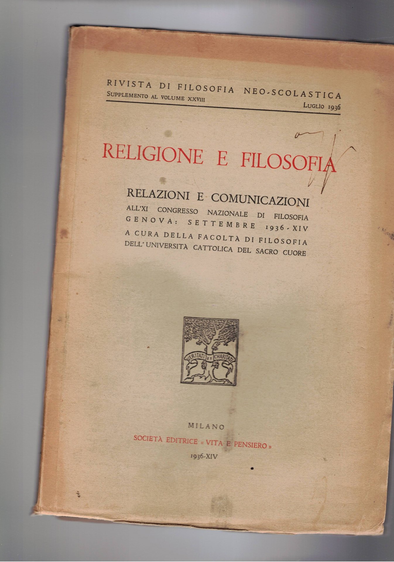Religione e filosofia. Relazioni e comunicazioni all'XI congresso nazionale di Filosofia. Genova- settembre 1936 a cura della fac. di filosofia dell'univ. Cattolica del sacro cuore.