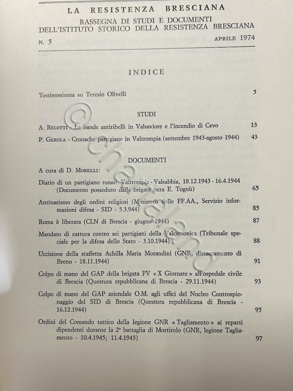 Resistenza bresciana - Rassegna di studi e documenti n. 5 - ed. 1977 | Libri antichi e moderni |