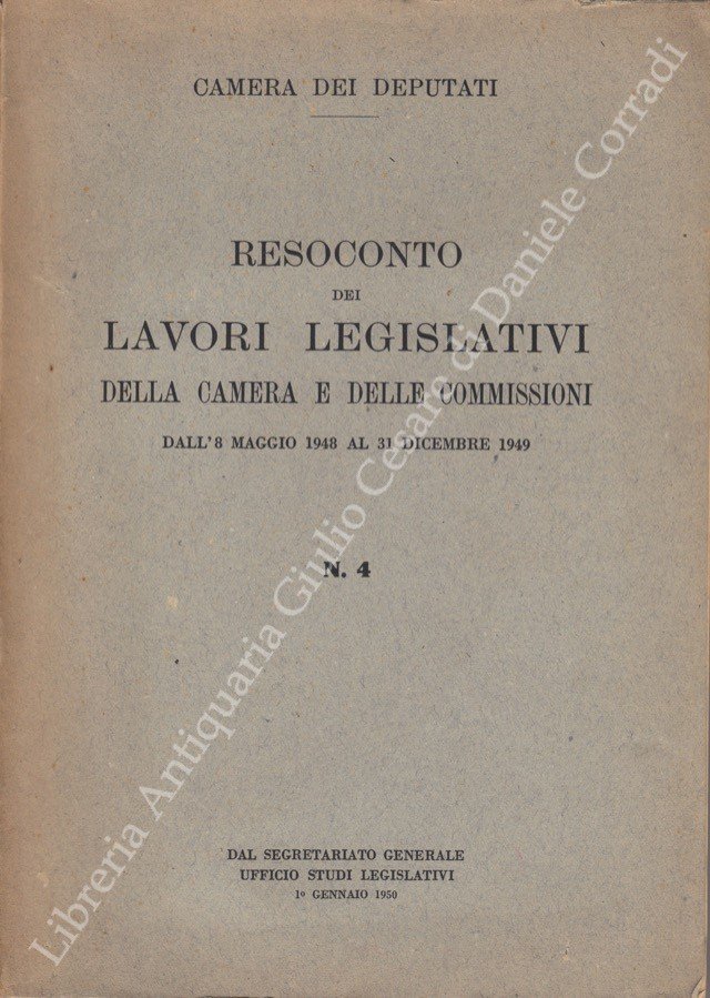 Resoconto dei lavori legislativi della Camera e delle Commissioni dall'8 maggio 1948 al 31 dicembre 1949. N. 4 | Libri antichi e moderni | Camera Dei Deputati