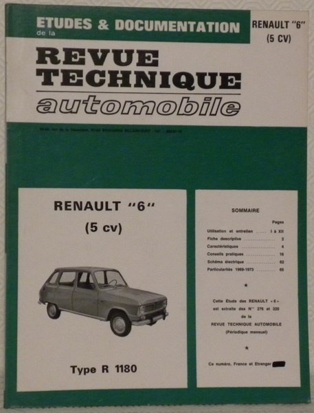 Revue technique automobile. Etudes et documentation. RENAULT “6” (5cv) Type R 1180. | Libri antichi e moderni |