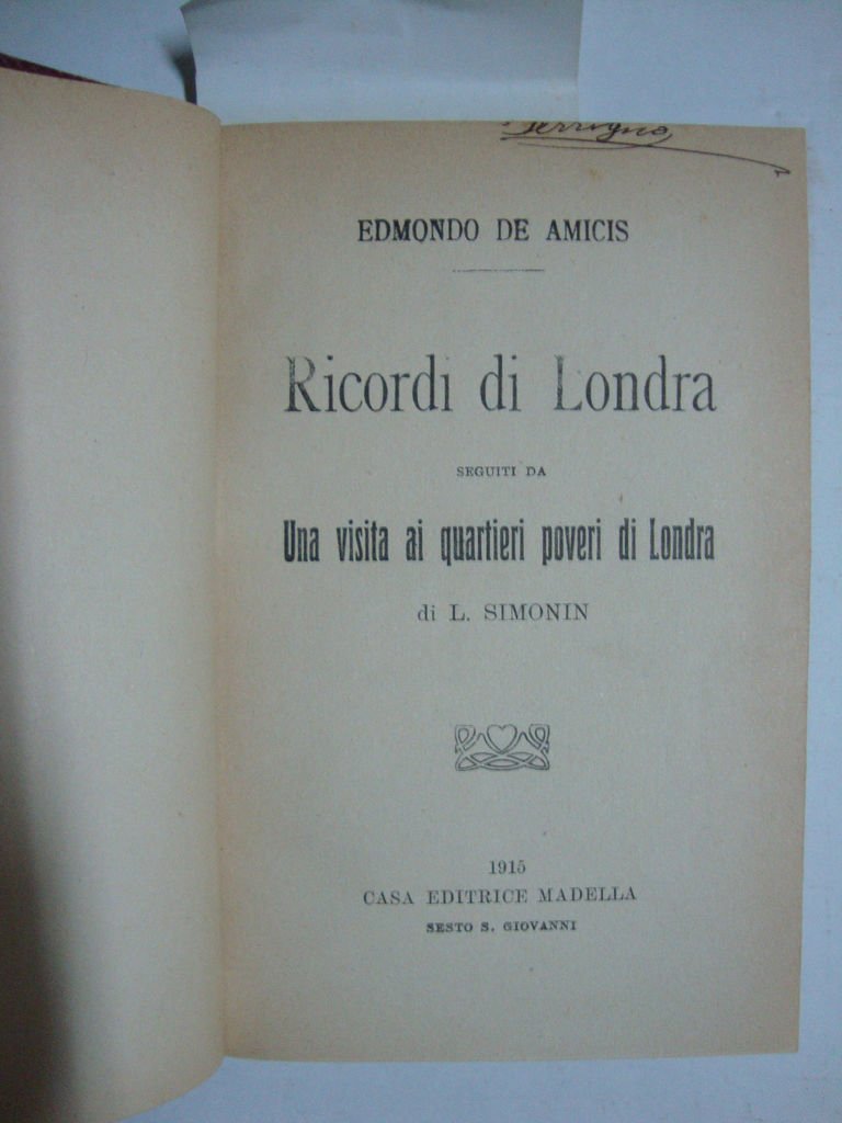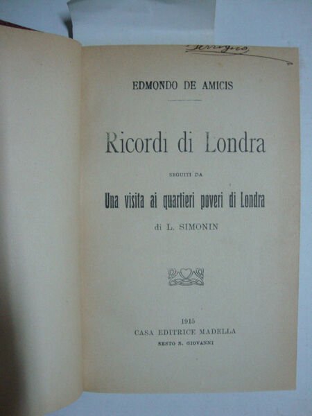 Ricordi di Londra | Libri antichi e moderni | De Amicis Edmondo